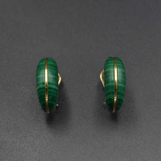 Gold Malachite Hoop Earrings