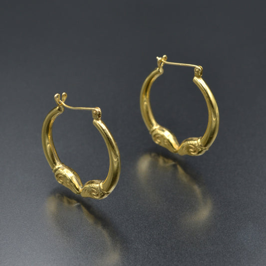 Sold outDouble Rams Head Gold Earrings