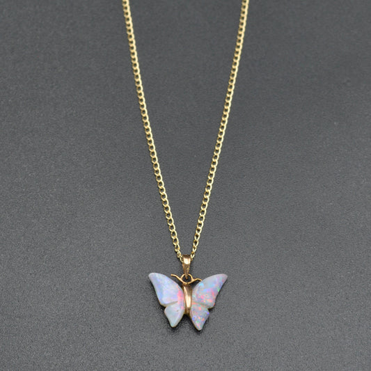 White Opal Butterfly and Gold Necklace
