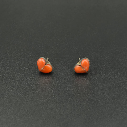 Sold outCoral and Silver Heart Earrings