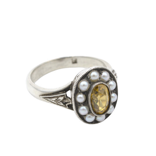 Sold outYellow Zircon, Pearl and Silver Ring